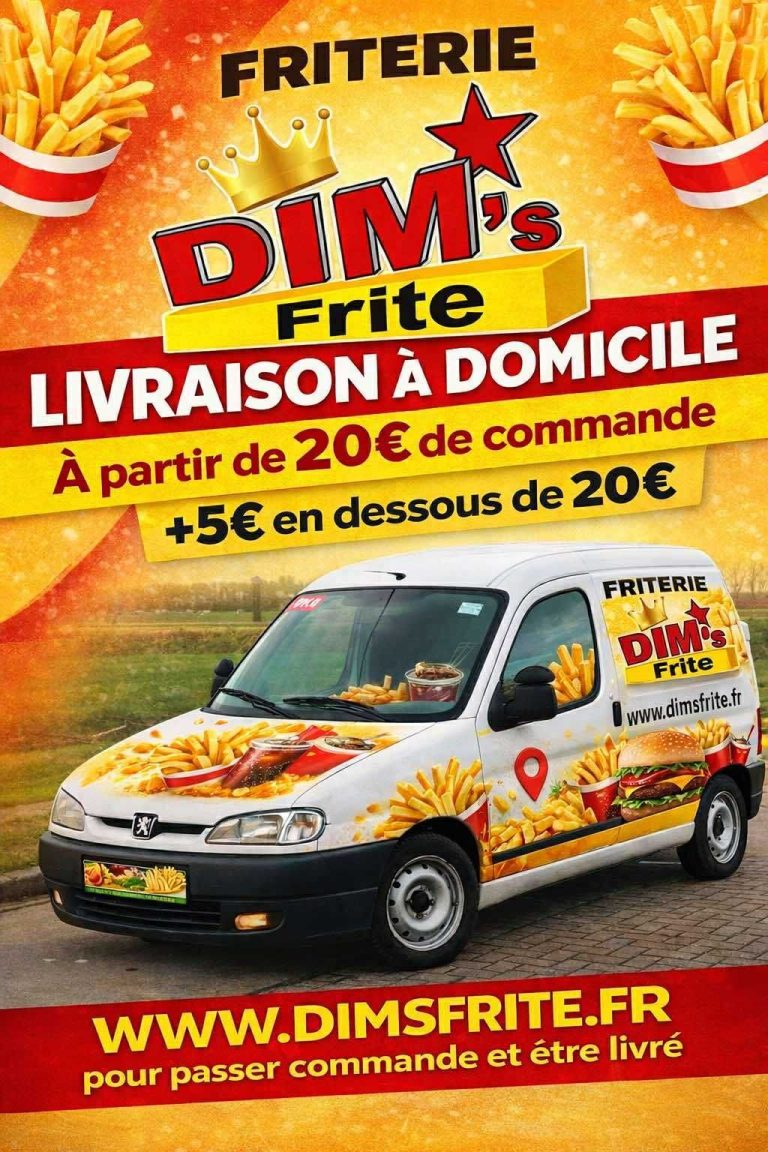La friterie DIM'S FRITE régale vos papilles depuis 2013 avec de bonnes frites fraiches cuites en deux bains, du pain artisanal frais chaque jour, des steaks pur Bœuf frais et des produits de friterie traditionnels de qualités provenant de fermes Valenciennoises et Amandinoises !